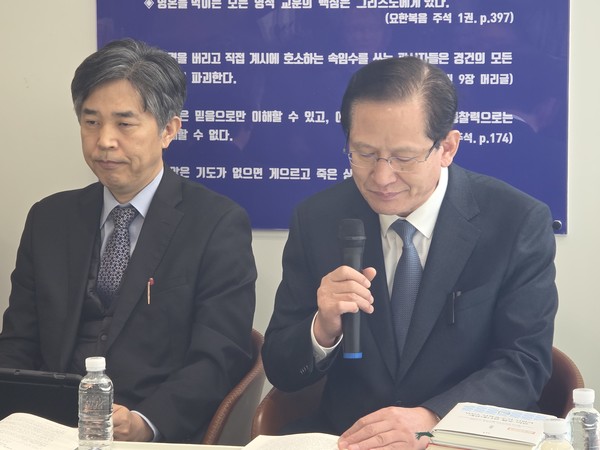 기자간담회와 함께 진행된 교수들의 입장발표는 문병호 교수(총신대 조직신학), 양진영 교수(광신대 조직신학), 서창원 교수(총신대 신대원 은퇴 역사신학), 김호욱 교수(광신대 역사신학)가 나섰다.
