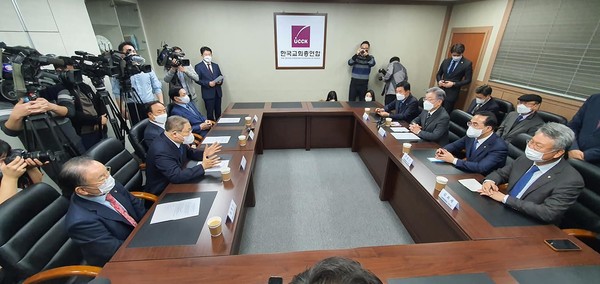 지난 11월 8일 오후 이재명 민주당 대선후보가 한교총 사무실을 방문했다.