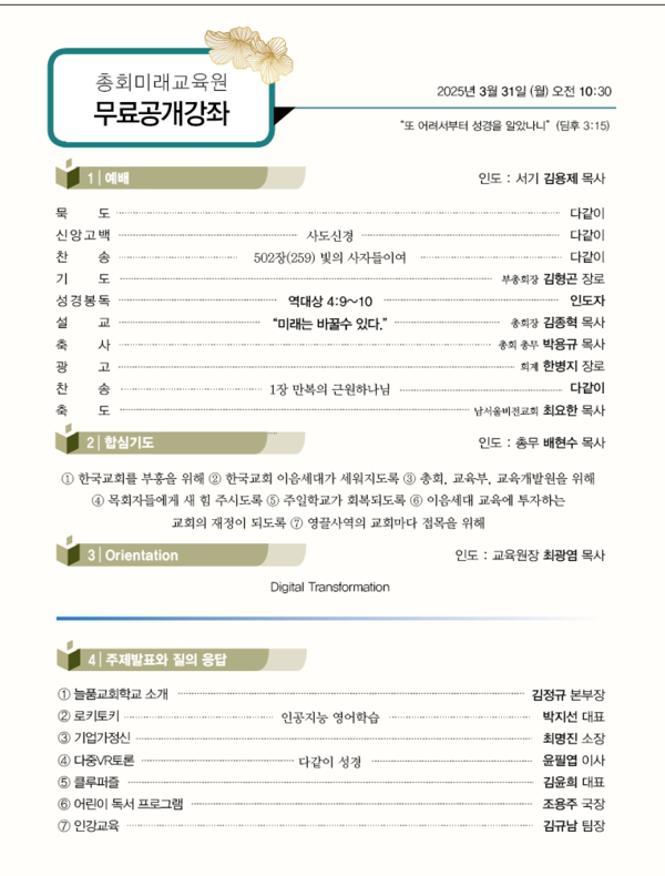 2025년 3월 31일, 남서울비전교회, 10시 30분