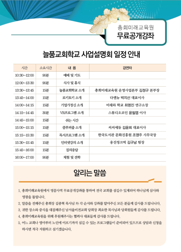 지역교회를 살리는 전도의 방편을 새롭게 제시하는 총회미래교육원 사업설명회에 200여 명이 참가하였다. 영유아초중고대학생까지를 아우르는 콘텐츠가 선을 보였다.