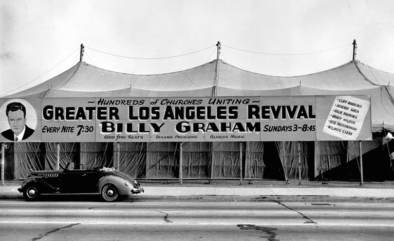 빌리 그래함(Billy Graham)은 1918년 노스 캐롤라이나주 샬롯에서 태어났으며 탬파 근처 플로리다 성경 연구소(Florida Bible Institute)와 일리노이주 휘튼 대학(Wheaton College)을 졸업했다. 그는 남부 침례 교회(1939)의 목사가 되어 시카고 교외의 작은 교회를 목회하며 주간 라디오 프로그램을 통해 설교했다.