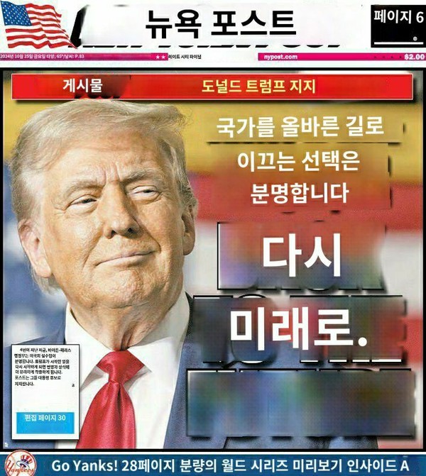 뉴욕포스트 지난 10월 25일자 신문 1면