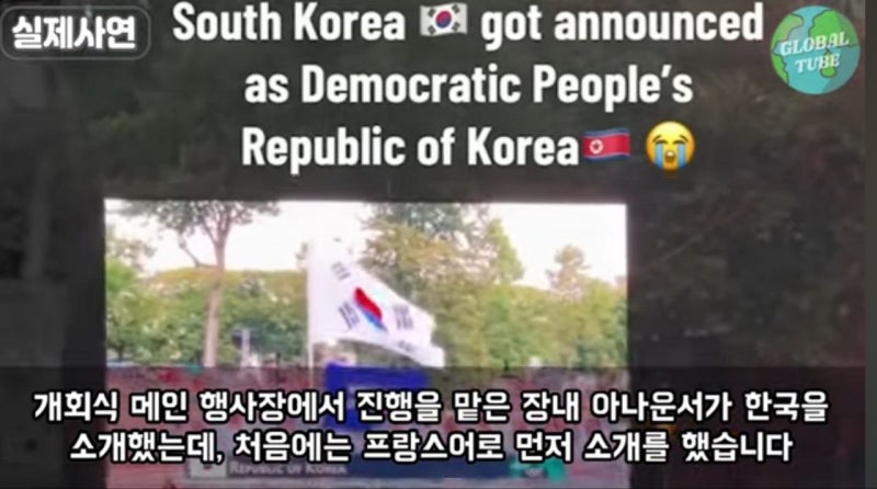 둘째, 개막식 입장식에서 대한민국을 ‘북한’으로 호칭했다.