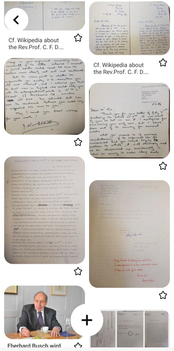 ■ 최초의 바울서신들 모음집이 주후 80년대 이전에 유통된 사본이라는 것을 입증 - "Paleographical Dating of 46 to the Later First Century, (Biblica-로마교황청 직영 국제학술기관지, Vol. 69, No. 2, 1988.)