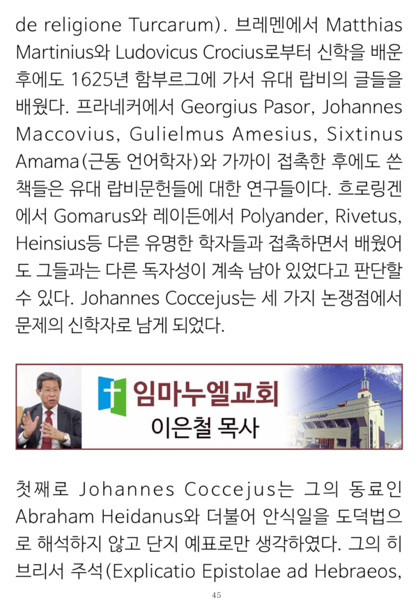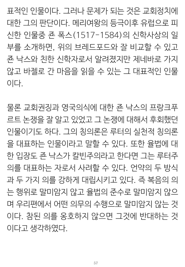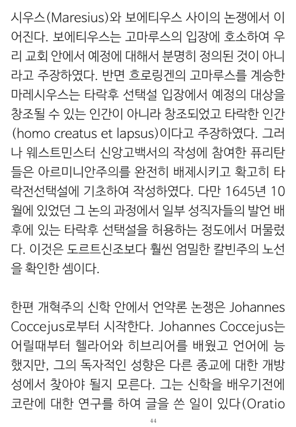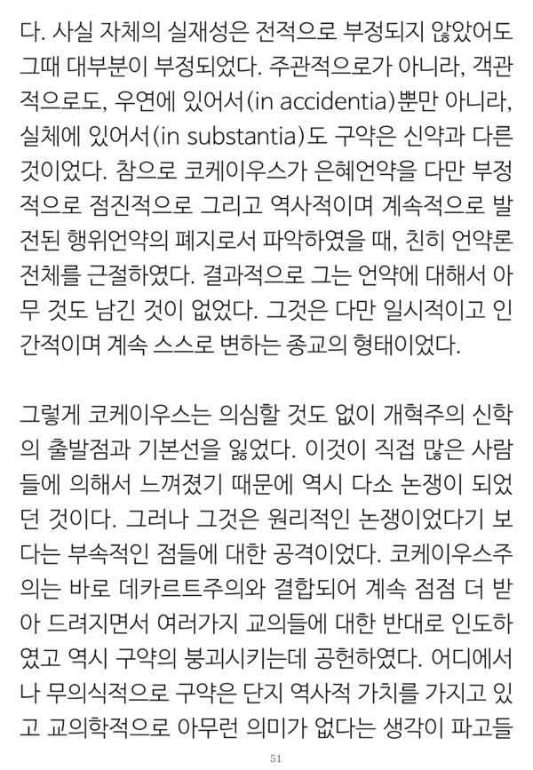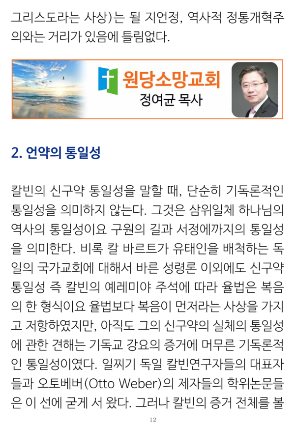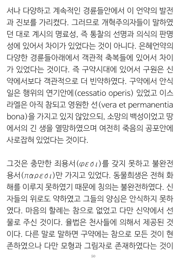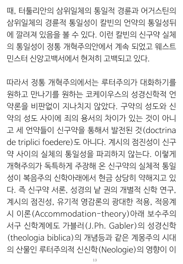 그런 논증의 체계와 신구약의 '그 자체로서' 통일성이란 개념으로 종교개혁자들 중에서 유일하게 쯔빙글리의 입장과 같이 한다는 사실 및 복음의 형식으로서 율법에 대한 구체적 이해들은 그 논문 자체를 참조할 필요가 있을 것이다.
