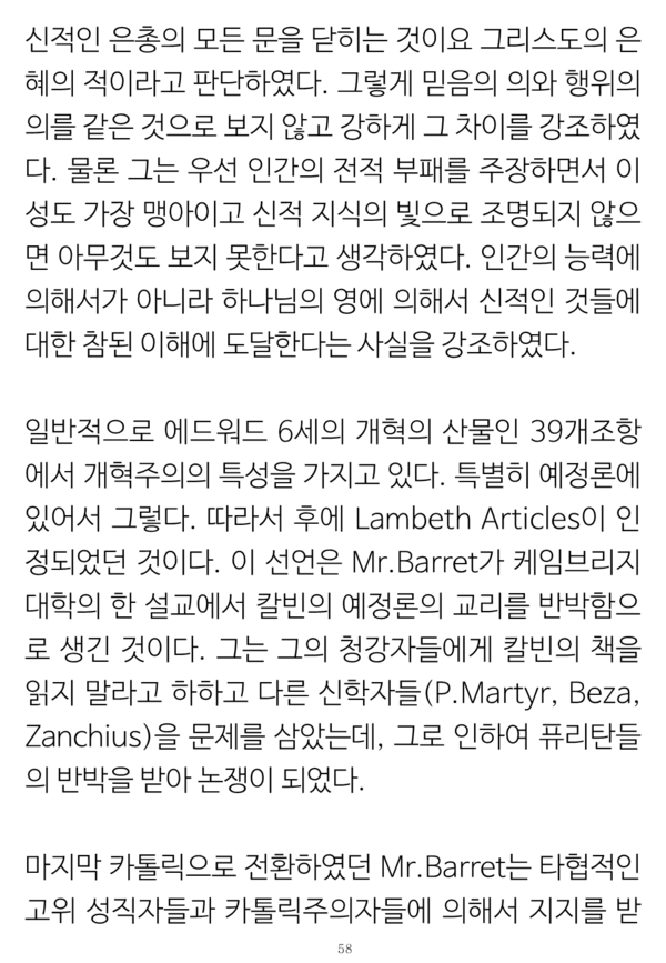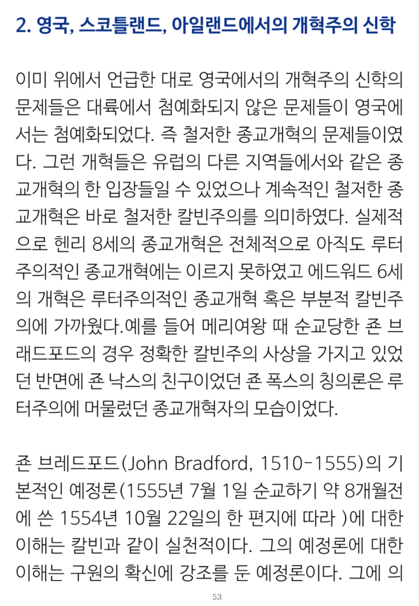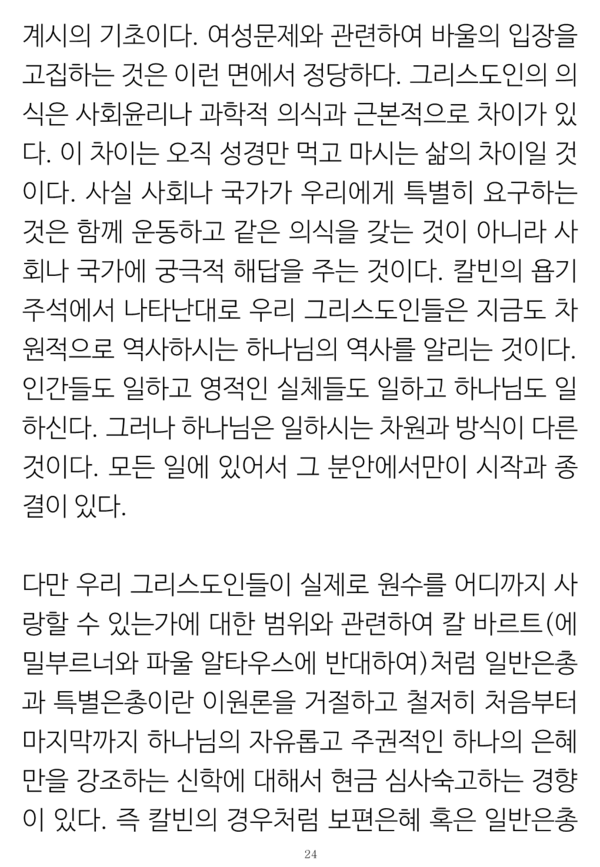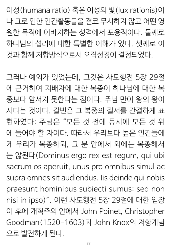 특별히 칼빈의 경우 그의 '기독교 강요 개정판들'에서나 주석들 및 기타 그의 전반적인 글들에서도 그런 원리가 뚜렷했다. 그는 성경에서 묻거나 말하지 않는 것을 호기심으로 묻거나 말하지 않는 방식으로, 오직 그리고 전 성경으로만 생각하고 말하는 것은 물론, 성경에서 분명하게 말하는 것들을 침묵으로 지나가기를 거절하였던 선지자적 파숫군의 사명을 철저히 지키기를 원하였다는 것이다.