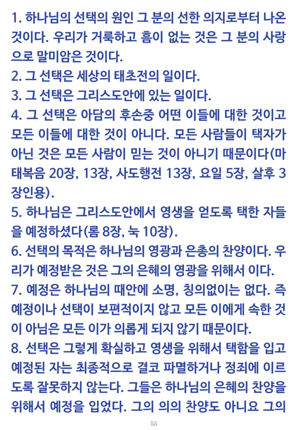 3.5.5. 어떤 예외도 없이 그가 택한 전체 사람들에게 그의 선택을 주께서 동일한 서정을 제시하고 나타내신다는 것