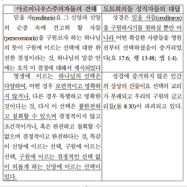 1. 논쟁점들에 따라 합의된 신학적 입장