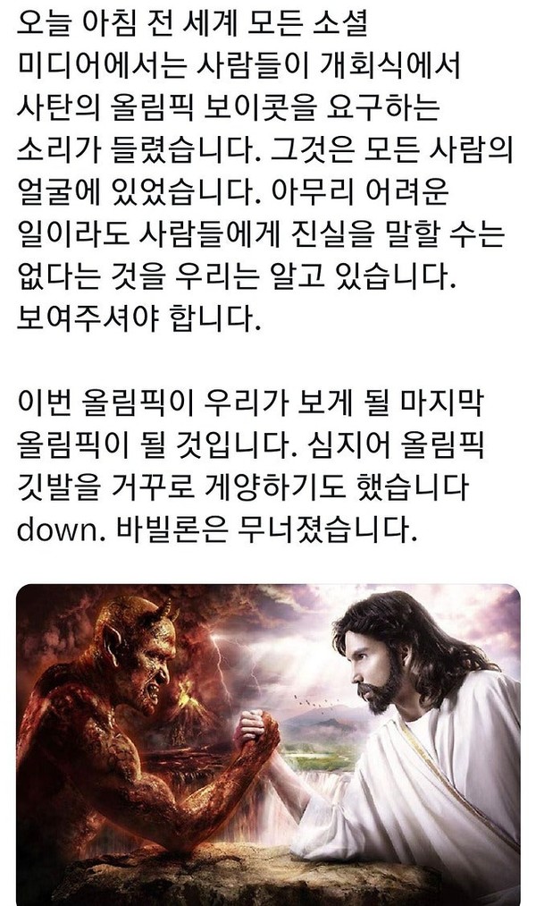 프랑스 파리 올림픽에서 구세주 그리스도상이 있는 서핑보드는 올림픽 위원회에 의해 엄격히 금지되었다. 그들은 헌장을 인용하여 "어떤 종류의 정치적, 종교적 또는 인종적 시위나 선전도 어떤 올림픽 경기장에서도 허용되지 않는다."라고 말했다. 하지만 어제 그들은 문자 그대로 공개적으로 기독교를 조롱하며 그들만의 규칙을 위반했다.