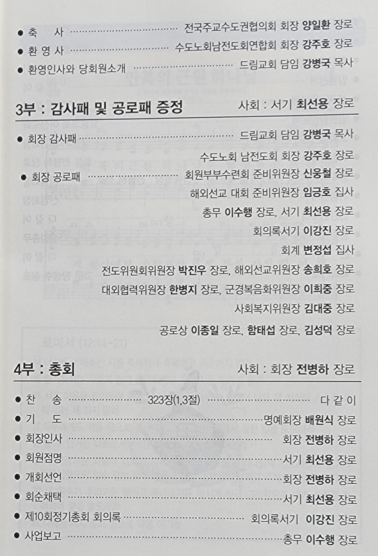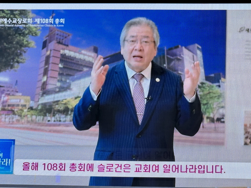 2부 격려사와 축사 및 환영사 시간에 총회장 오정호 목사가 “남전도회는 총회의 허리 역할을 한다. 복음 사역을 위해 일어나는 모든 남전도회 회원들이 되기를 바란다”고 영상 격려사를 했다.
