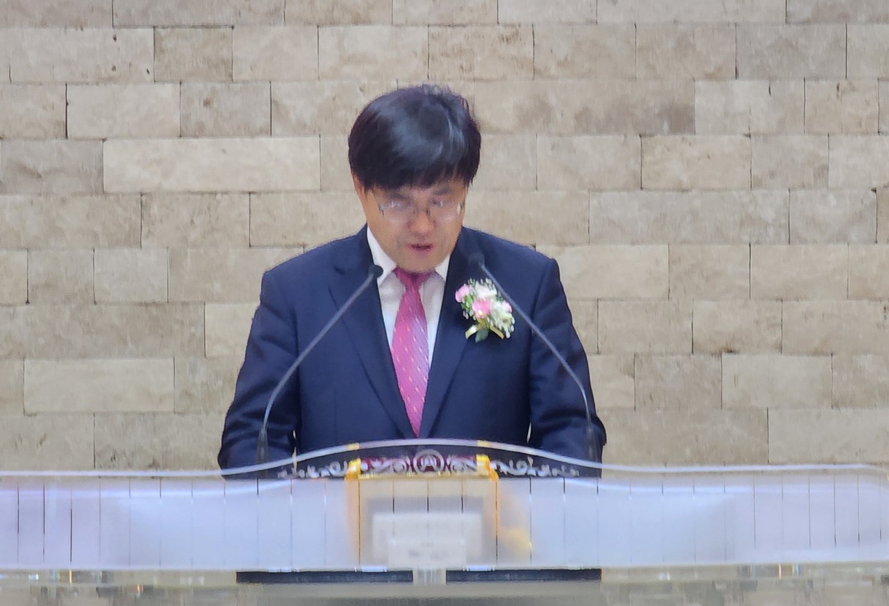 이날 수도노회장 장성태 목사가 로마서 12장 14~21절을 본문으로 ‘선으로 악을 이기라’는 제목으로 설교했다.