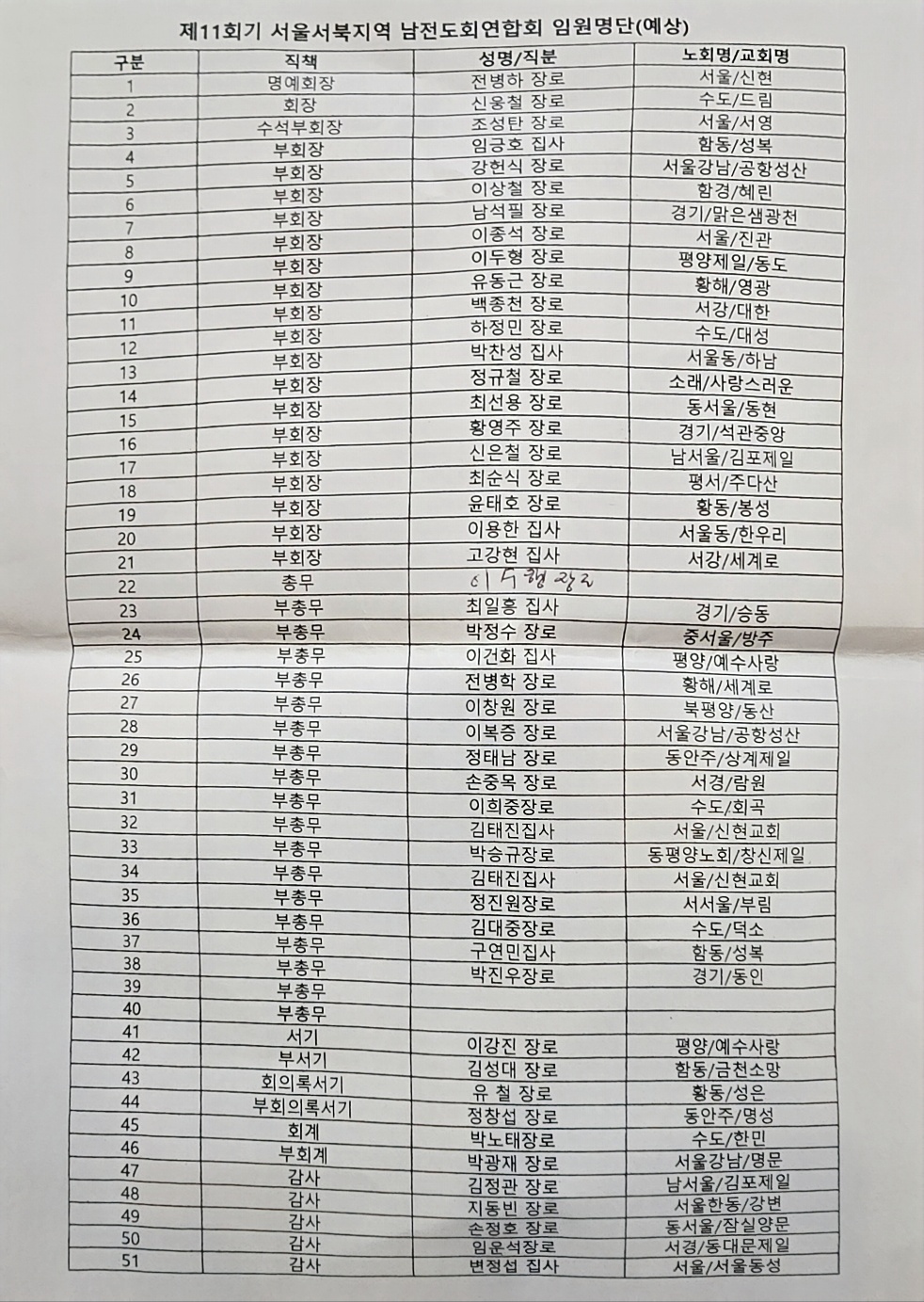신웅철 장로(수도노회, 구리 드림교회)가 수석부회장에서 회장으로 선출되었다. 신장로는 현재 전국남전연 총무를 맡고 있다.