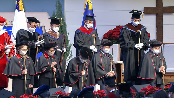 ◎ 예배는 찬양대와 오케스트라의 연주에 맞춰 총장 오정현 목사와 각 아카데미 학장, 부학장, 생도들이 입장하며 시작되었습니다. 이병구 후원이사회 이사장의 성경 봉독 후 총장 오정현 목사는 ‘변함없는 섬김의 원리’(사도행전 16장 6-10절)라는 제목으로 말씀을 전했습니다. 오정현 총장은 “사랑글로벌아카데미가 사무엘상의 ‘라마나욧 아카데미’, 사도행전의 ‘베뢰아 아카데미, 두란노 아카데미’ 같이 시대의 인물들을 길러내는 영적 집현전이 되기를 바란다”며, 새로운 시작을 하는 졸업생들에게 “사랑글로벌아카데미에서 발견한 ‘사명의 깃발’을 가슴에 품고 새로운 비전을 향해 내딛는 여러분의 발걸음을 축복하며 졸업생 여러분 속에서 능력으로 역사하시는 그리스도의 역사를 따라 모든 영역에서 예수 그리스도만이 왕이 되시도록 새판짜기를 할 때, 혼돈이 질서로, 어두움이 빛으로, 메마름이 생기로 변하여 가정이 살고, 공동체가 하나되고, 이 민족이 부흥하기를 소원 한다”고 강조했습니다.