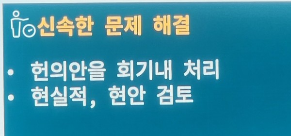 5) 제109회 헌의안은 회기 내에 처리될 수 있도록 신속하게 처리.