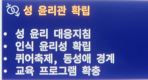 7) 교회 내 성 윤리의 확립에 적극적으로 대처.