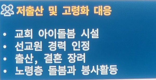 2) 농어촌교회와 세계선교(GMS) 선교정책을 적극적으로 지원.
