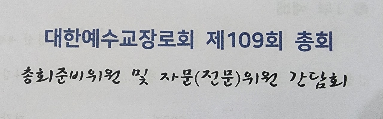 제109회 총회는 먼저 표어나 슬로건이 없는 총회가 될 것 같다. 그동안 "~동행이니, 샬롬하면 부흥이니, 교회여 일어나라!"고 외치는 슬로건이 있었고, 그에 따르는 행사에 엄청난 비용이 지출되었으나, 남는 것은 하나도 없었다는 것이 총회원들의 평가이다. 오히려 동행이 아니라 따로따로 갈등과 분파만 더 생기고, 샬롬해도 우리의 영성이 부흥되지 않았으며, 아무리 일어나라고 외쳐도 일어날 기미 조차도 안보인다는 것이 총대들의 중론이다.