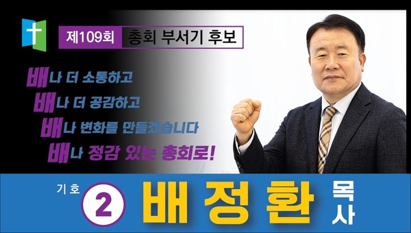 지난 8월 12일 배정환 목사(광주노회 미문교회)는 제109회 총회 임원선거 부서기 후보로 등록을 마쳤다.