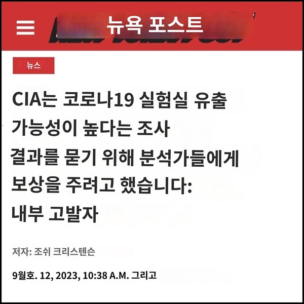 핵심 문제 : CIA가 COVID-19의 기원에 대해 미국 대중에게 거짓말을 한 이유는?