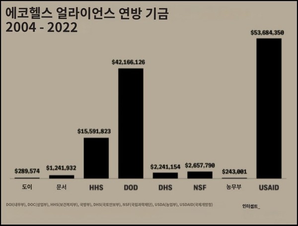 2009년부터 2019년까지 USAID는 EcoHealth Alliance와 협력하여 1,200개의 새로운 바이러스를 식별하고 전 세계 5,000명에게 질병 탐지 교육을 실시했으며 60개의 연구실을 강화했다. 이 파트너십은 CIA가 자금 지원과 기술 이전을 대가로 전 세계 생물학 연구 시설에 인적 자산을 직접 투자할 수 있는 채널을 제공했다. 2022년, 에코헬스 얼라이언스의 전 부사장인 앤드류 허프 박사는 피터 다작 박사와 CIA의 관계에 대해 공개적으로 폭로했다.