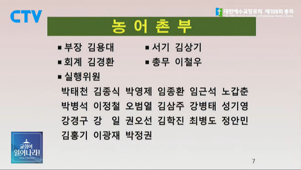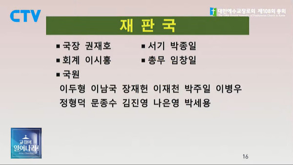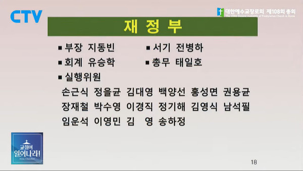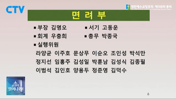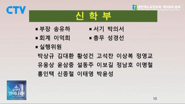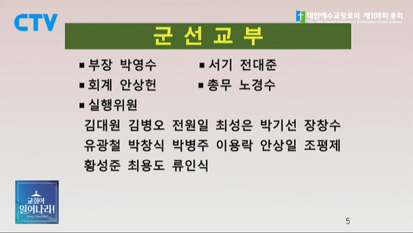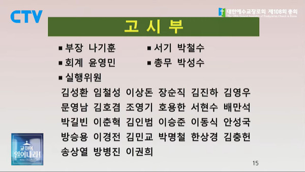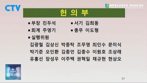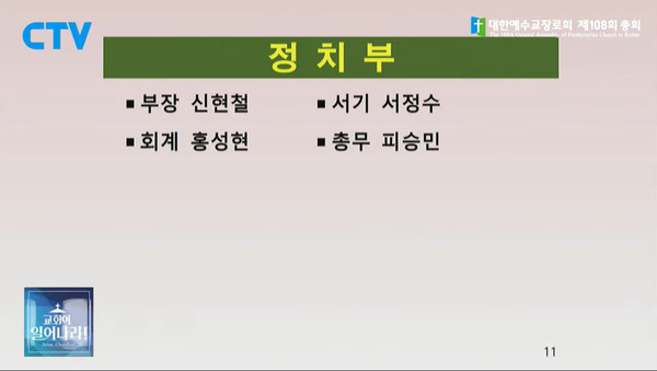 이영신 목사(서울강남노회) 천서탈락의 건은 투표로 압도적인 지지로 천서 허락을받았다. 그 결과 선관위의 정치부장 후보탈락 결정에 무리가 있었음을 시인한 꼴이되어 선관위는 신뢰도에 치명타를 주었다. 이영신 목사는 정치부원으로 복귀하였으나 이미 등록한 신현철 목사가 정치부장을 맡기로 결정했다.