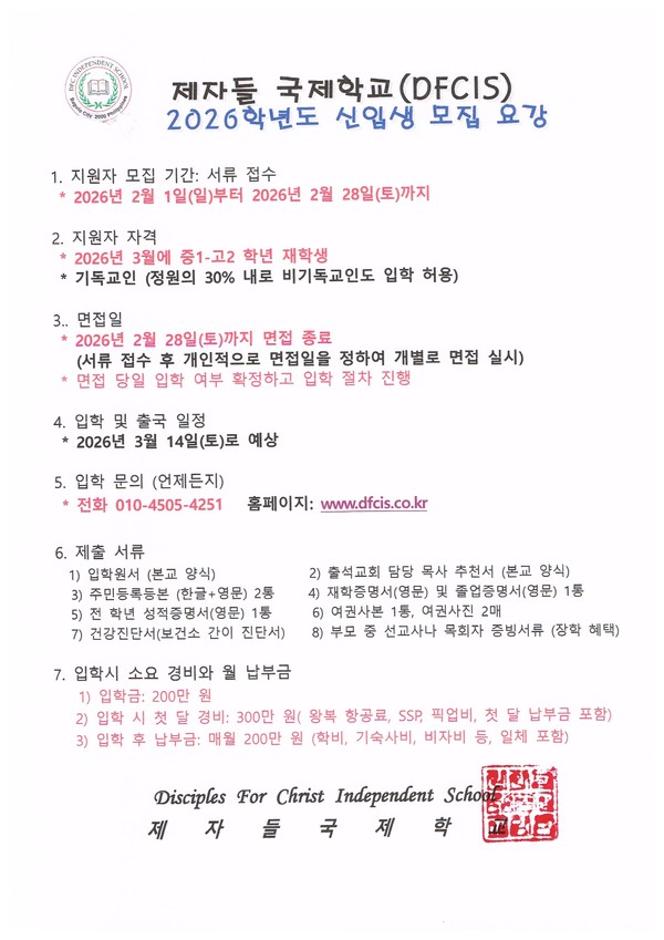 <저작권자 © 리폼드투데이 무단전재 및 재배포금지> 관련기사 【교육】한국은 영어교육이 필요한가? 제29회기 총회군선교회 회장 윤영민 목사 【서북협】기도와 전도 운동 기도회 코로나19 - 거대한 은폐 【합동포럼】누가 참여하는가? 리폼드 투데이 webmaster@reformedtoday.net 다른기사 보기 저작권자 © 리폼드투데이 무단전재 및 재배포 금지 당신만 안 본 뉴스 【헌법개정안】의결정족수에 대한 총회임원회 결정 【교회이탈】떠나는 이유 5가지 【한국교회】신뢰도 19%, 교회괴사증후군 【정년시리즈3】정년 연장을 주장하는 논리 리폼드투데이 주간신문 25호 발간 【총회뉴스】2026년 3월 24일 한기영 목사, 동전주노회서 총무 예비후보 추천 【헌법개정안】의결정족수에 대한 총회임원회 결정 주요기사 【총회뉴스】4월 2일 재경충청장로회 정기총회 리폼드투데이 주간신문 25호 발간 【총회뉴스】2026년 3월 24일 한기영 목사, 동전주노회서 총무 예비후보 추천 【신학논단】그리스도인의 부활체 小考