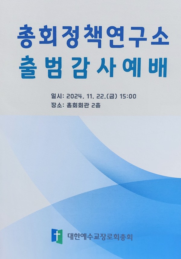 예장합동(총회장 김종혁목사) 총회는 지난 11월 22일 초대이사장 신용식목사, 초대소장 이국진목사, 29명의 이사로 구성된 총회정책연구소 출범감사예배를 드렸다.