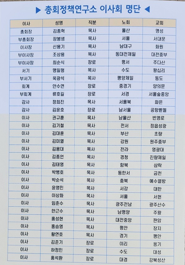 초대 이사장 신용기목사는 “ 부족하지만 이사장으로 연구소를 운영 지원하고 총회의 지도를 이루는 데 노력하겠다”고 소감을 밝혔다.