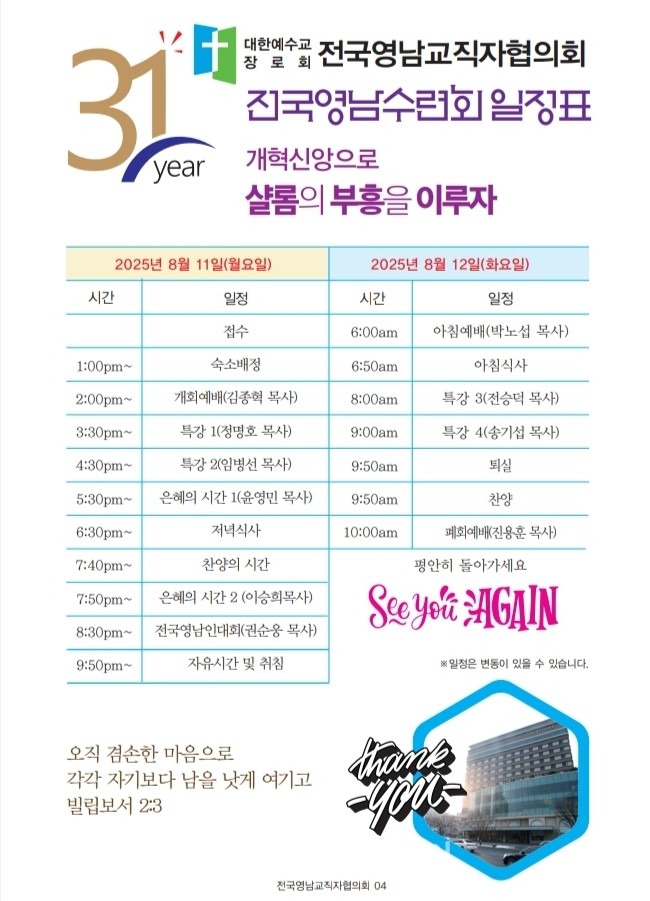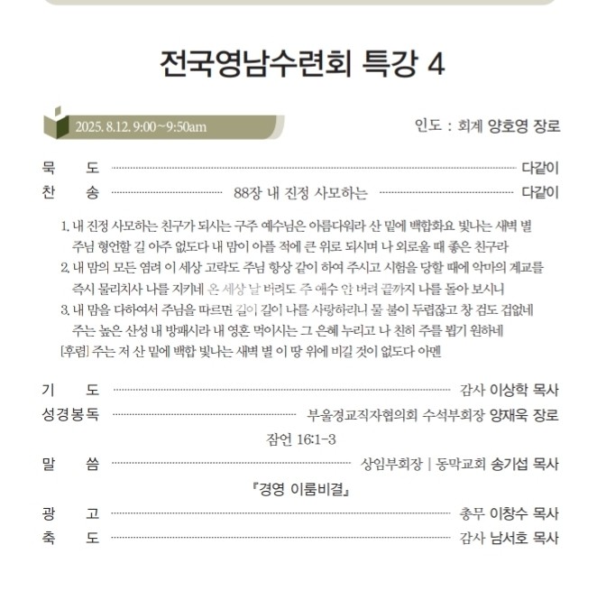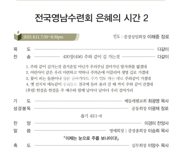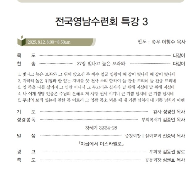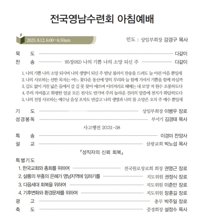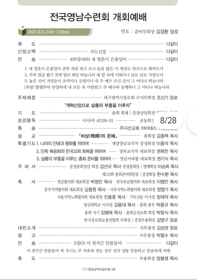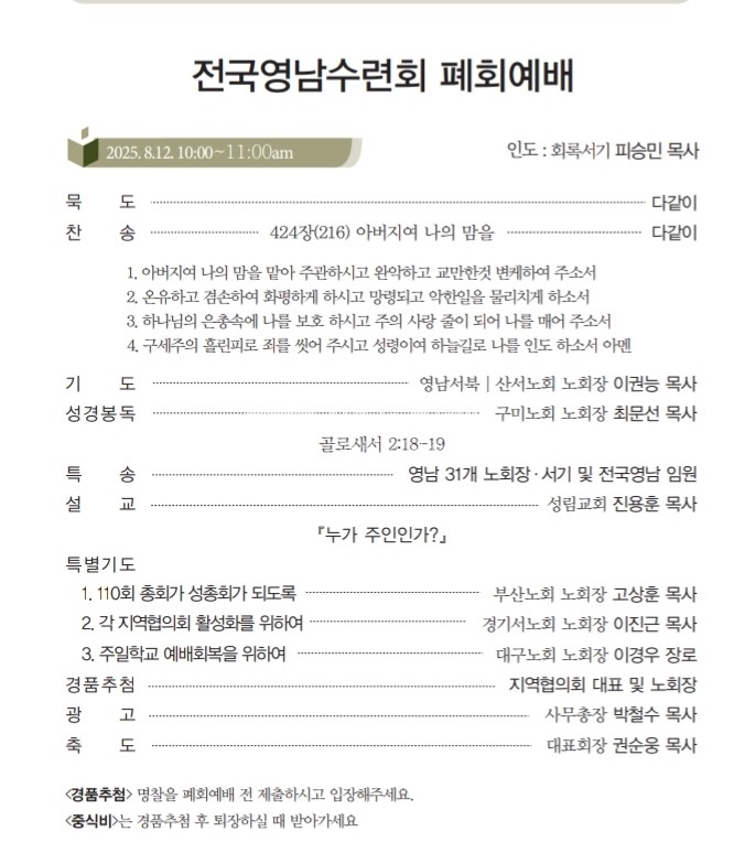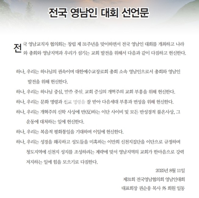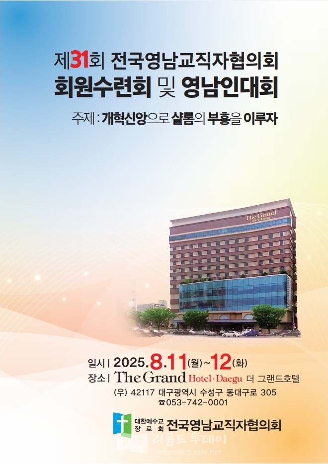 <저작권자 © 리폼드투데이 무단전재 및 재배포금지> 관련기사 죄없는 자가 돌로 쳐라! 【주간】리폼드투데이 21호 발행 【소강석칼럼】주신 은혜 안에서 최선을 다한 여름수련회 【교회파괴】총회는 이대로 관망할 것인가? 리폼드 투데이 webmaster@reformedtoday.net 다른기사 보기 저작권자 © 리폼드투데이 무단전재 및 재배포 금지 당신만 안 본 뉴스 【헌법개정안】의결정족수에 대한 총회임원회 결정 【교회이탈】떠나는 이유 5가지 【한국교회】신뢰도 19%, 교회괴사증후군 【정년시리즈3】정년 연장을 주장하는 논리 리폼드투데이 주간신문 25호 발간 【총회뉴스】2026년 3월 24일 한기영 목사, 동전주노회서 총무 예비후보 추천 【헌법개정안】의결정족수에 대한 총회임원회 결정 주요기사 【총회뉴스】4월 2일 재경충청장로회 정기총회 리폼드투데이 주간신문 25호 발간 【총회뉴스】2026년 3월 24일 한기영 목사, 동전주노회서 총무 예비후보 추천 【신학논단】그리스도인의 부활체 小考