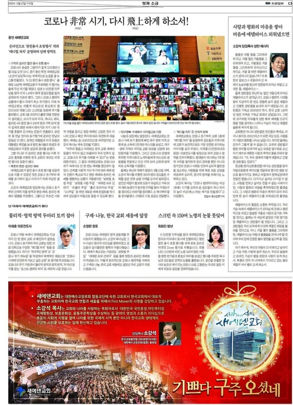 소강석 새에덴교회 담임목사는 코로나 초기부터 선제적 자율 방역과 현장 예배, 온라인 예배의 병행을 주장했다. 그렇다고 무조건 사회적 여론을 등지고 현장 예배만 고집한 것이 아니라 코로나 확산 추이에 따라 유연하게 대응했다. 예배는 온·오프라인으로 바뀌었지만 소강석 목사는 계속 강단을 지켰다. 주일에는 저녁예배까지 6차례 예배를 모두 직접 인도했고, 수요 1, 2부 예배와 금요 철야 예배, 새벽 기도회도 직접 인도했다. 물론 방역 수칙을 준수하면서 드린 예배였다.