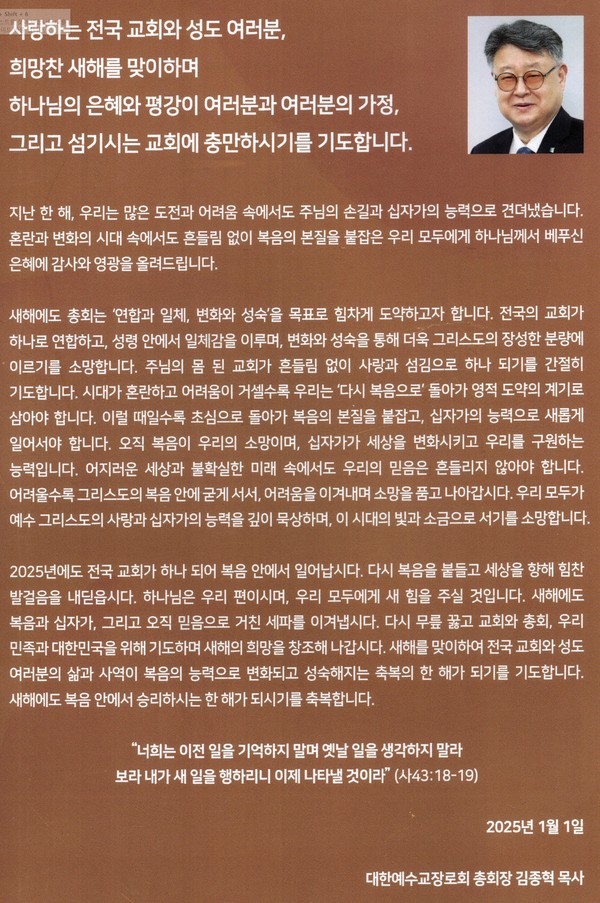 <저작권자 © 리폼드투데이 무단전재 및 재배포금지> 관련기사 【하영진칼럼】미/ 나/ 리/ 【트럼프】 대통령 성탄절 메시지 【바울】"성령의 은사"와 사역에 대한 가르침 리폼드 투데이 webmaster@reformedtoday.net 다른기사 보기 저작권자 © 리폼드투데이 무단전재 및 재배포 금지 당신만 안 본 뉴스 【헌법개정안】의결정족수에 대한 총회임원회 결정 【교회이탈】떠나는 이유 5가지 【한국교회】신뢰도 19%, 교회괴사증후군 【정년시리즈3】정년 연장을 주장하는 논리 리폼드투데이 주간신문 25호 발간 【총회뉴스】2026년 3월 24일 한기영 목사, 동전주노회서 총무 예비후보 추천 【헌법개정안】의결정족수에 대한 총회임원회 결정 주요기사 【총회뉴스】4월 2일 재경충청장로회 정기총회 리폼드투데이 주간신문 25호 발간 【총회뉴스】2026년 3월 24일 한기영 목사, 동전주노회서 총무 예비후보 추천 【신학논단】그리스도인의 부활체 小考