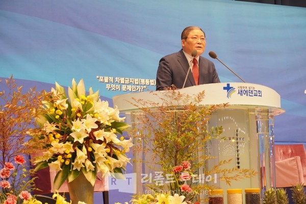 지난 2021년 11월 17일 포괄적 차별금지법 경기지역시민 공청회에서 한교총 대표회장 소강석 목사는 포괄적 차별금지법 반대 대국민 메시지를 선포했다.