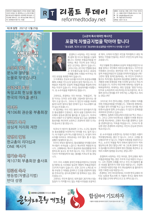 주간신문 리폼드투데이 성탄특집호 1면에 게재(12월 25일 발행)