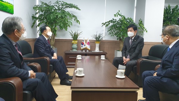 지난 1월 15일 더불어민주당 코로나19 국난극복위원회 공동위원장 김진표 의원이 한교총을 방문해 대표회장(소강석, 이철, 장종현)을 만나 환담하고, 14일 진행한 당정 협의 결과를 설명했다.
