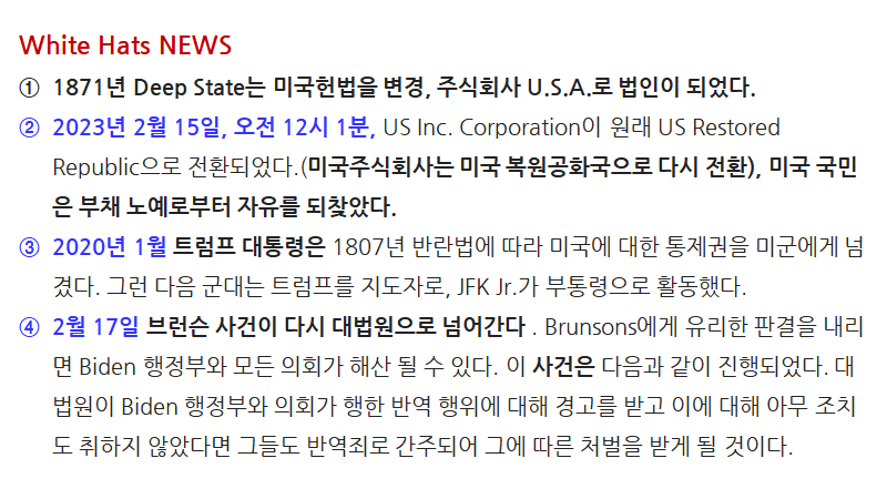 그런데 연방대법원 스코투스에서 지난 2023년 1월 6일 No라고 결정했지만 브런슨 형제는 굴하지않고 다시 탄원 미국시간 2023년 2월 21일 결정이 난다. 연방대법원이 2020년 부정선거 소송을 받아들이면 차고 넘치는 증거의 진실들이 미국의 최고 권위 연방대법원이란 무대 위에서 터진다.
