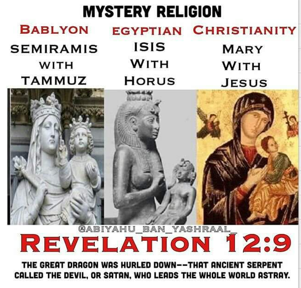 후에 담무스와 결혼하여 황후의 권세를 이어갔으며, 그를 태양신으로 추앙하고 그녀 자신도 달의 여신이 되면서 소위 ‘바벨론 종교’를 확립하게 된다. 니므롯과 세미라미스 그리고 담무스가 바로 바벨론 종교의 삼위일체인 것이다.