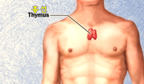 Thymus 흉선(가슴샘) '면역력의 샘'이라고 불리는 흉선. 가슴 정 중앙에 위치해 있으며, 면역세포를 활성화시키는 싸이모신 알파1을 분비한다.또 골수에서 만들어진 T림프구가 흉선에서 성숙된다.