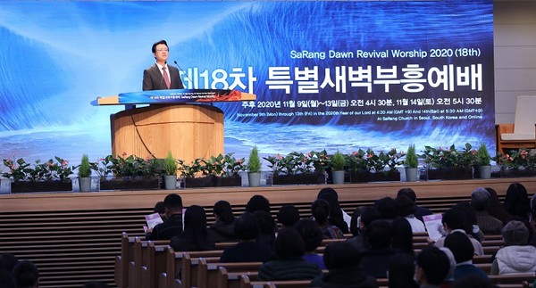 사랑의교회 특별새벽부흥예배는 2003년 오정현 목사가 부임하면서 처음 시작되어 한국교회에 특새라는 신조어를 틴생시켰습니다. 올해로 19년째 매년 봄, 가을 특별새벽부흥회로 모이는 특새는 매일 1만여 명이 넘는 성도들이 모여 함께 기도하며 부흥의 현장이 되고 있습니다. 금번 특새는 현장예배(예배실 좌석 수 20% 이내 인원이 참석)와 온라인생중계예배(SaRang On 유튜브 채널, SaRang TV)로 병행하여 드리며 감염병 예방과 안전에 최우선하여 진행합니다.
