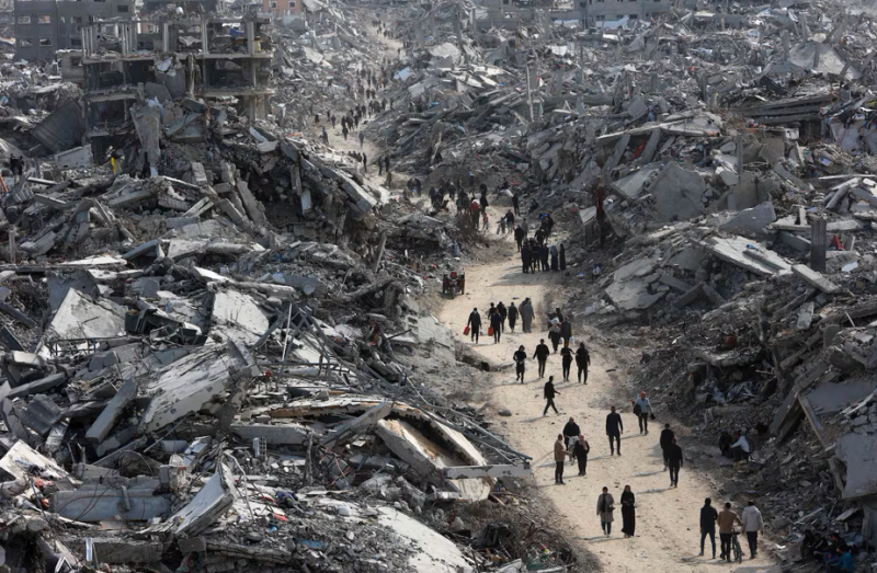 완전히 폐허로 변한 가자지구의 모습. 100일 이상 전쟁으로 주택 90%가 파괴됐고, 가자 주민 90%가 난민이 됐다.