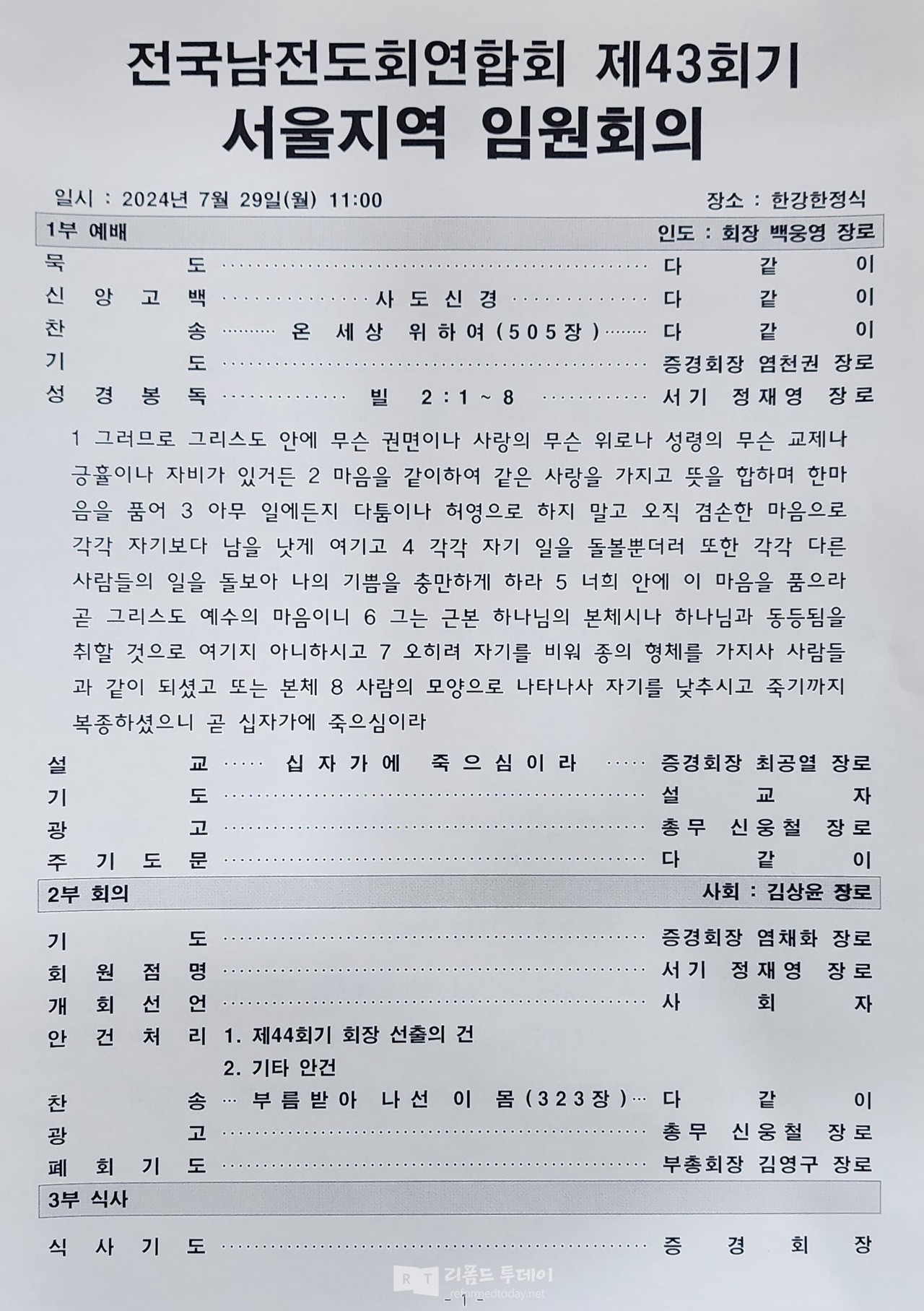 전국남전도회연합회가 7월 29일 차기 회장 선거를 실시했다. 지난 7월 19일까지 등록한 반재부 장로(성은교회·평서노회), 배원식 장로(상계제일교회·동안주노회), 임광수 장로(공항성산교회·서울강남노회), 전병하 장로(신현교회·서울노회) 4명의 후보를 놓고 투표에 들어간다.