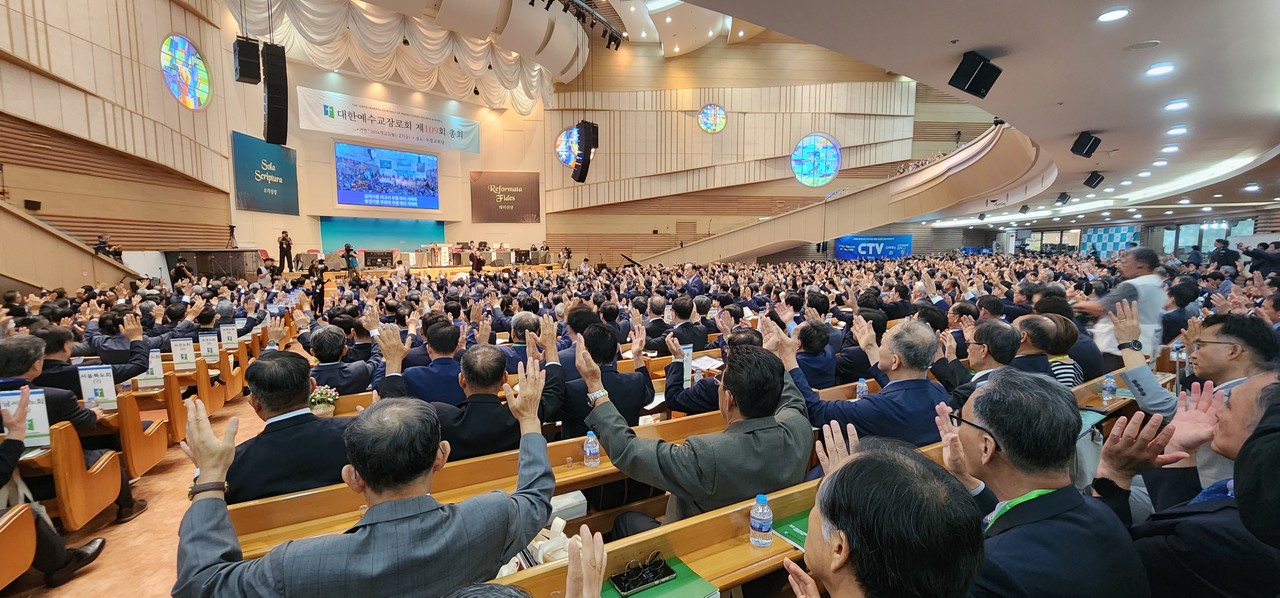 대한예수교장로회 합동측 총회(총회장 오정호 목사)는 23일부터 27일까지 우정교회(예동열 목사)에서 제109회 정기총회를 갖고 총회장에 김종혁 목사(명성교회)를 선출했다. 첫날 목사 총대 789명, 장로 총대 704명, 총 1494명이 참석한 가운데 개회됐다.