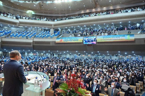 예장합동 은혜로운동행 기도운동을 마감하는 전국기도회가 4월 10일 새에덴교회(소강석 목사)에서 열렸다. 저녁 찬양예배 시간에 합동교단 164개 노회 관계자들과 총회임원 등 600여명과 성도들 포함 4천여명이 참석한 가운데 뜨거운 회개와 회복, 사명으로 하나 되는 아름다운동행기도운동 마지막 전국기도회가 있었다. 코로나로 인한 두려움이 채 가시기 전에 106회 총회가 주관하는 기도회 중 역대 최다인원이 참석하여 뜨겁게 기도하고 미래에 대한 비전을 묵상하고 사명을 다짐하는 귀한 시간이었다.