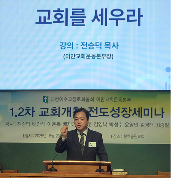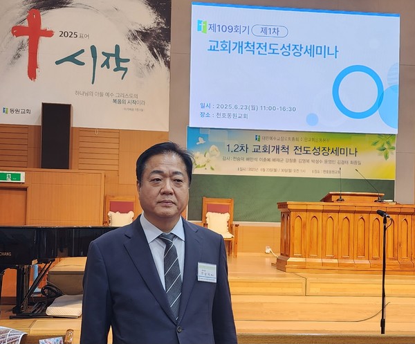 제109회 총회 전도부 이만교회운동본부(본부장 전승덕 목사)는 2025년 5월 23일 동원교회(원로 배재군 목사, 담임 배진호 목사)에서 제109회기 제1차 ‘교회개척전도성장세미나’를 열었다.