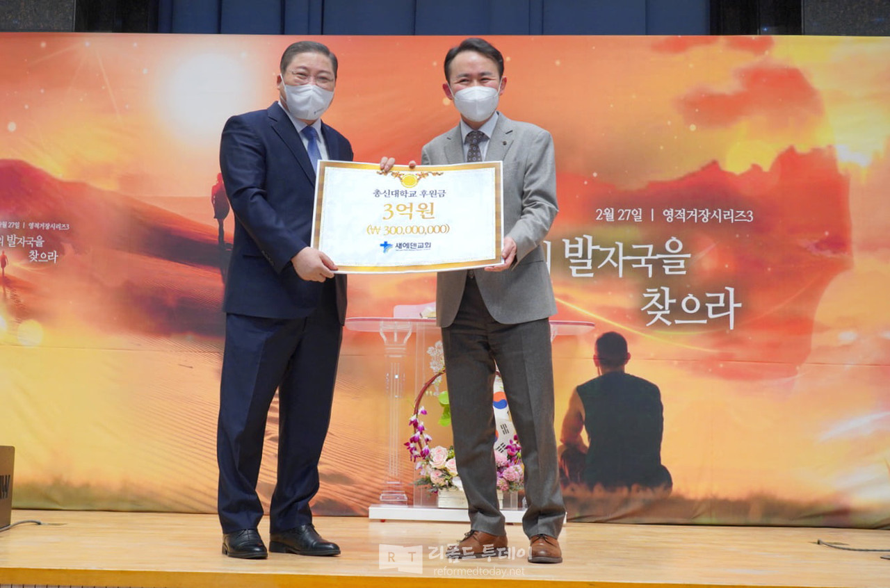 새에덴교회(소강석 목사)가 지난 2월 27일 총신대학교 후원금 3억원을 전달하였다.
