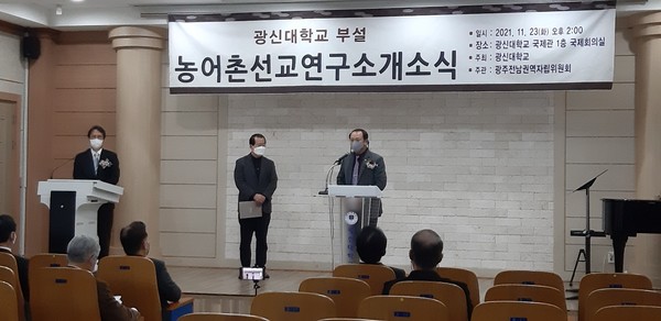 지난 11월 23일, 광신대학교(총장 김경윤 박사)와 광주전남권역자립위원회는 농어촌선교연구소를 설립하여, 광신대학교 국제관에서 개소식을 열었다.