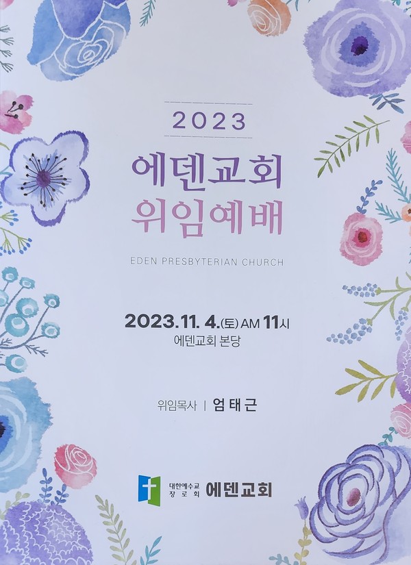 이에 앞서 관서노회는 지난 11월 2일 임시노회를 개최하여, 청빙된 엄태근 목사를 에덴교회 위임목사로 승인하였다. 엄태근 목사는 소래노회에서 부목사로 섬기다가 이번에 에덴교회에 청빙공고를 보고 응시하여 청빙을 받았다. 엄목사는 총총출신이다. 우여곡절 끝에 담임목사를 세운 에덴교회는 흩어진 많은 성도들을 다시 회복시켜야 하는 과제를 안고 있다.