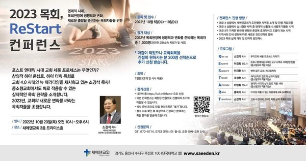엔데믹 시대, 목회현장에 생명력과 변화, 새로운 출발을 준비하는 목회자들을 위한 2023목회, ReStart 컨퍼런스가 오는 10월 20일, 새에덴교회 프라미스홀에서 열렸다.