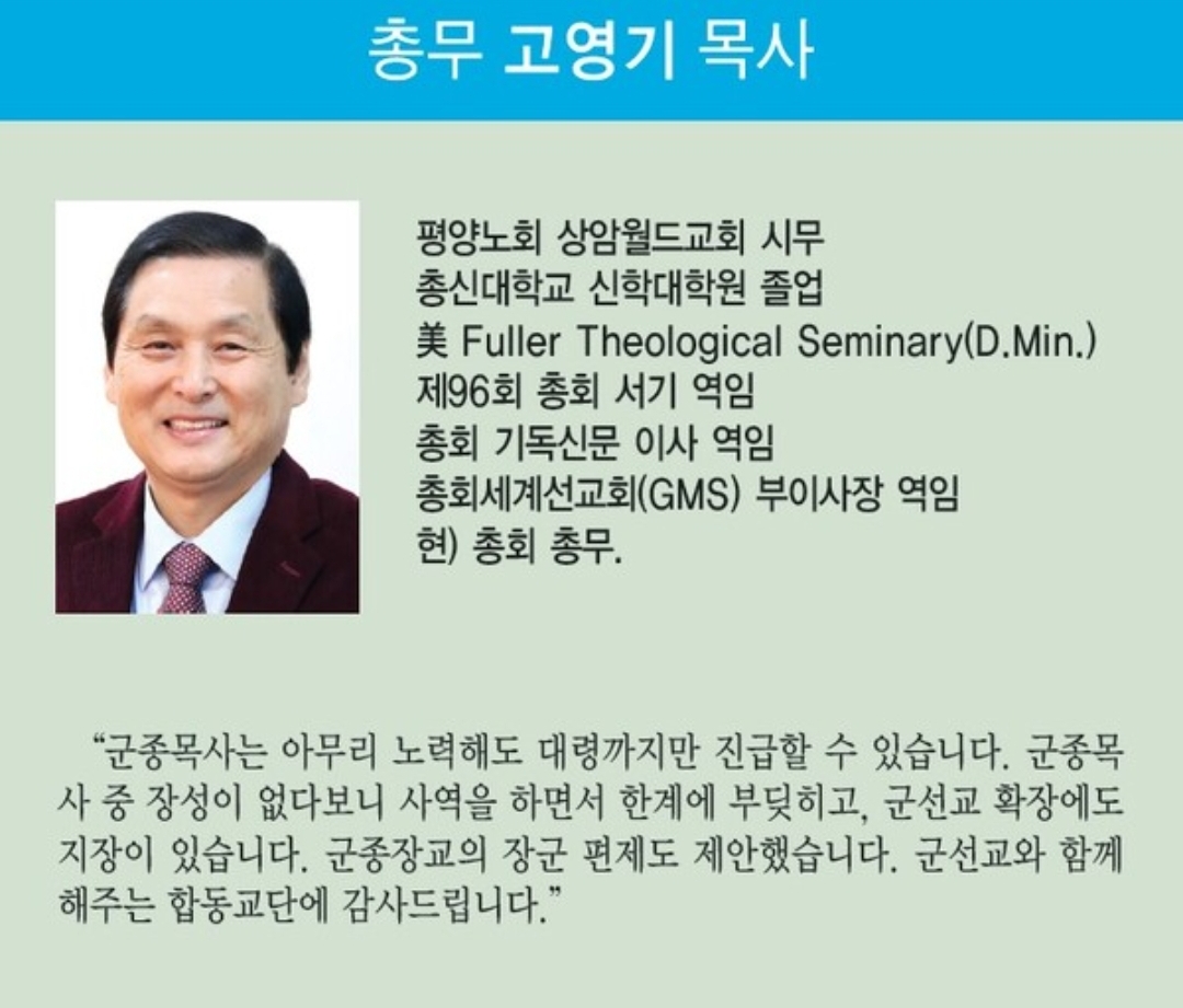 분단된 조국 대한민국의 피흘림 없는 평화적 복음통일을 준비하겠습니다. 2023년 우리 조국이 동족 전쟁을 끝내고 분단 70주년이 되는 뜻 깊은 해입니다. 마치 유대 민족이 바벨론 포로 70년 생활을 끝내고 이스라엘 고국으로 돌아왔듯이 우리 대한민국도 이제 분단 된지 70년 만에 평화로운 통일, 피 흘림 없는 평화적 복음통일이 될 때가 되었다고 봅니다. 통일은 먼 곳에 있으나, 하나님이 허락하시면 어느 날 갑자기라도 이루어질 것입니다. 제가 총무에 연임이 되어 진다면 누구보다도 다가올 조국 대한민국의 평화적 복음통일을 준비하는 총무가 되도록 하겠습니다.