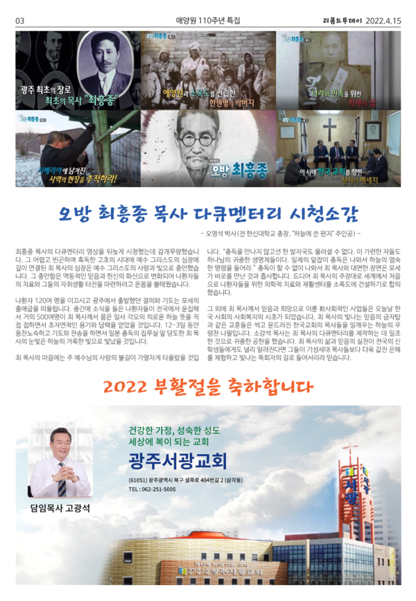 주간 리폼드투데이 4호(부활절호) 3면 게재