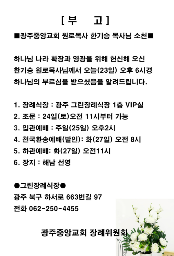오는 5월 27일(화)오전 8시 발인예배